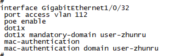 2 接入交换机接口配置(删除接口认证也不能上线)。