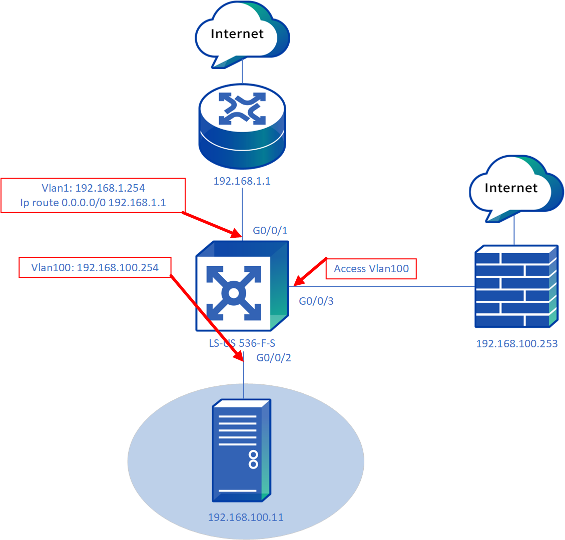 服务器 192.168.100.11 的网关是核心192.168.100.254,这样会默认走路由器去上网。