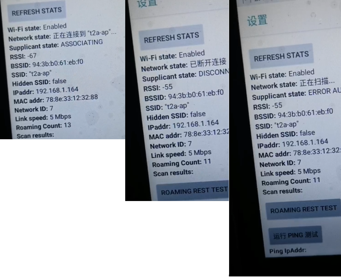 我这边有一套华三的无线环境,控制器为WX3508H,无线AP为WA5320X。目前遇到一个很奇怪的问题,我们新买了几个安卓的手持终端设备,目前这几个无线设备无法连接到现有的WIFI网络,在Network state 观察,是一直是 正在连接到“我的wifi名称 ”,然后“已连接”,然后接着“已断开连接”。一直在这几个状态间切换。但是这几个终端设备连接其他的wifi 网络都没有问题,包括用手机作为热点,这几个终端也能连接。