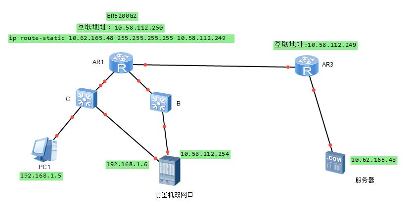 我的路由器和前置机服务器在同一个网段,按文档要求好像有点怪异
