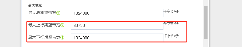 图片中按实际填写的最大上行期望带宽,繁忙比80%。