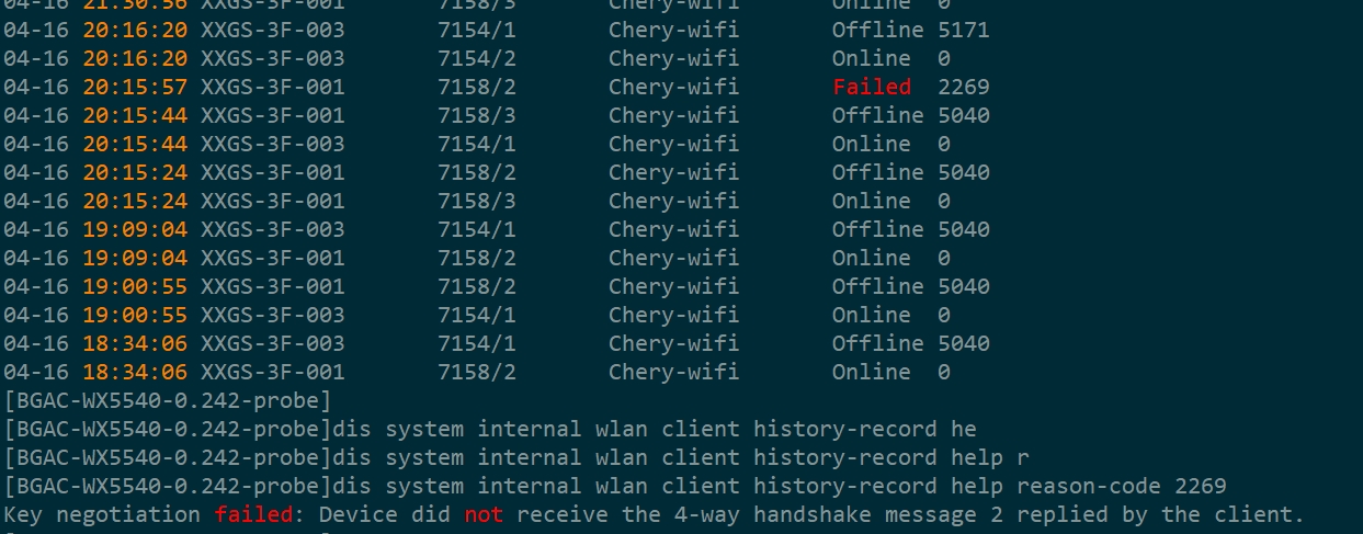 终端无线下线记录代码2269:Key negotiation failed: Device did not receive the 4-way handshake message 2 replied by the client(密钥协商失败:设备没有收到客户端应答的4次握手消息2)这个和认证服务器有关系吗,需要怎么优化
