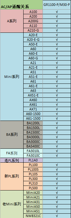 M30-P可管理的AP有A系列,Mini系列,BA系列,FA系列,新PL系列,老Mini系列。请在下图中查看详细AP型号
