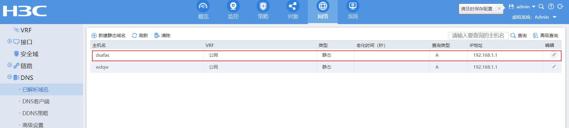 防火墙在WEB如何删除特定静态DNS解析条目(比如删除第一条)而不是全部