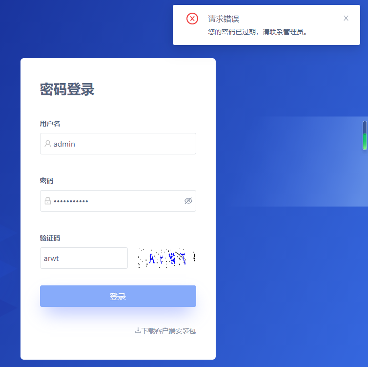 UIS上安装的终端杀毒ESM登录提示密码过期,请联系管理员,这个什么问题?版本号是E6902P07