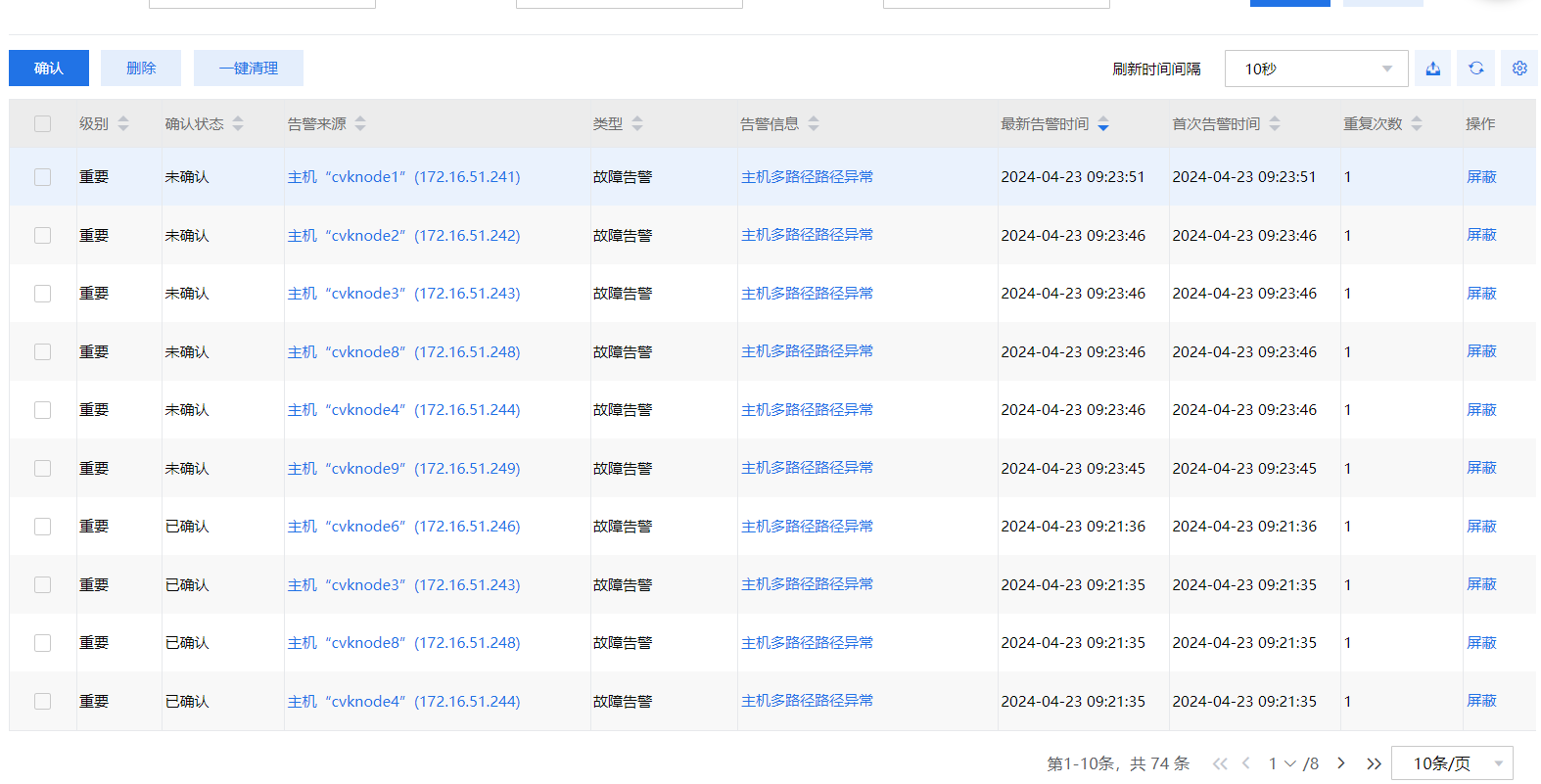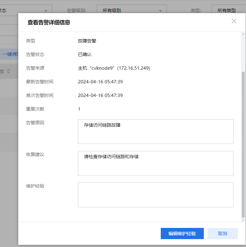 告警原因:存储访问链路故障