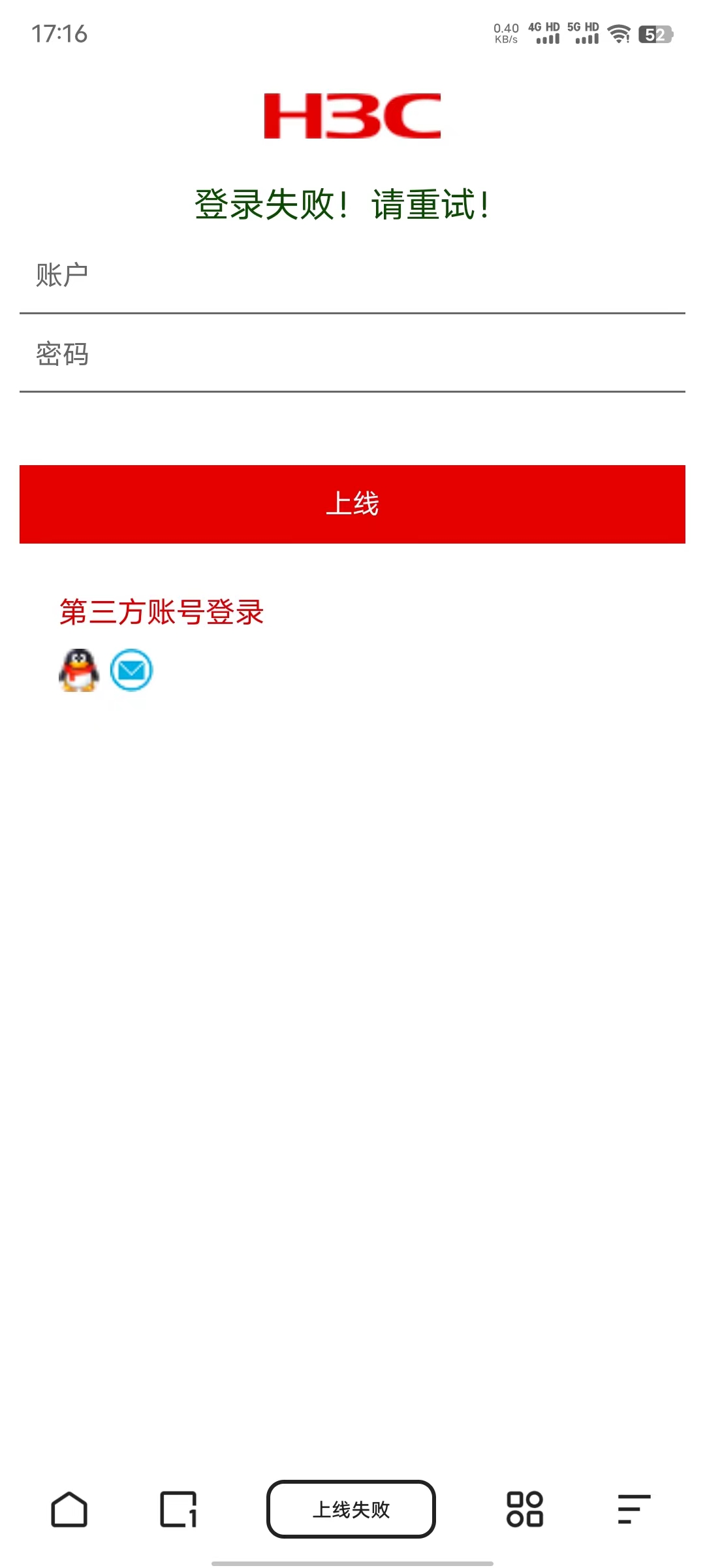 用户登录失败报错:登录失败!请重试!