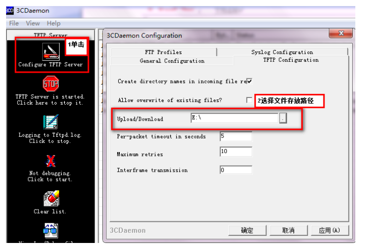 给设备和电脑配置成同网段IP地址(举例:WAC配置成192.168.100.1,电脑配置成192.168.100.2),在电脑上通过3CD软件搭建tftp服务器