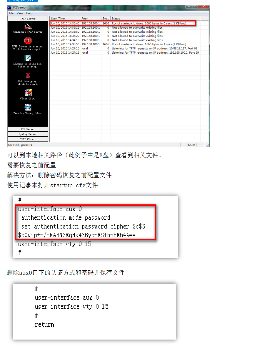 <H3C>tftp 192.168.100.2 put startup.cfg