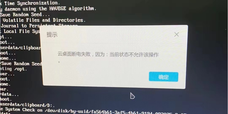 你去查看下云桌面的策略里面有没有设置禁止断电