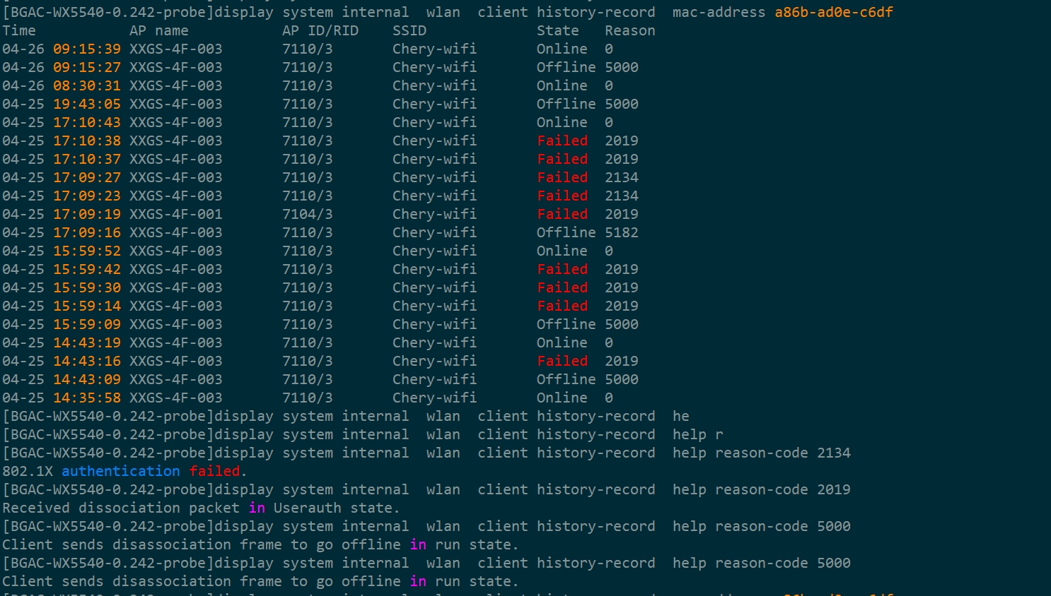 个别终端连接无线出现终端经常在AP下上线下线问题,有处理过的吗