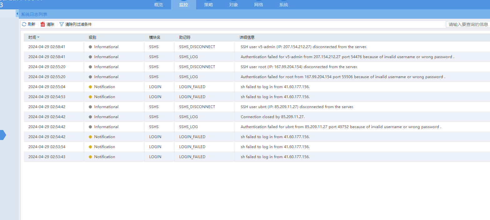 您好请问 F100-a-g3 通过web页面 查询外部远程登录信息在哪里查询