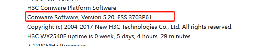 H3C WX2540E uptime is 0 week, 5 days, 4 hours, 29 minutes