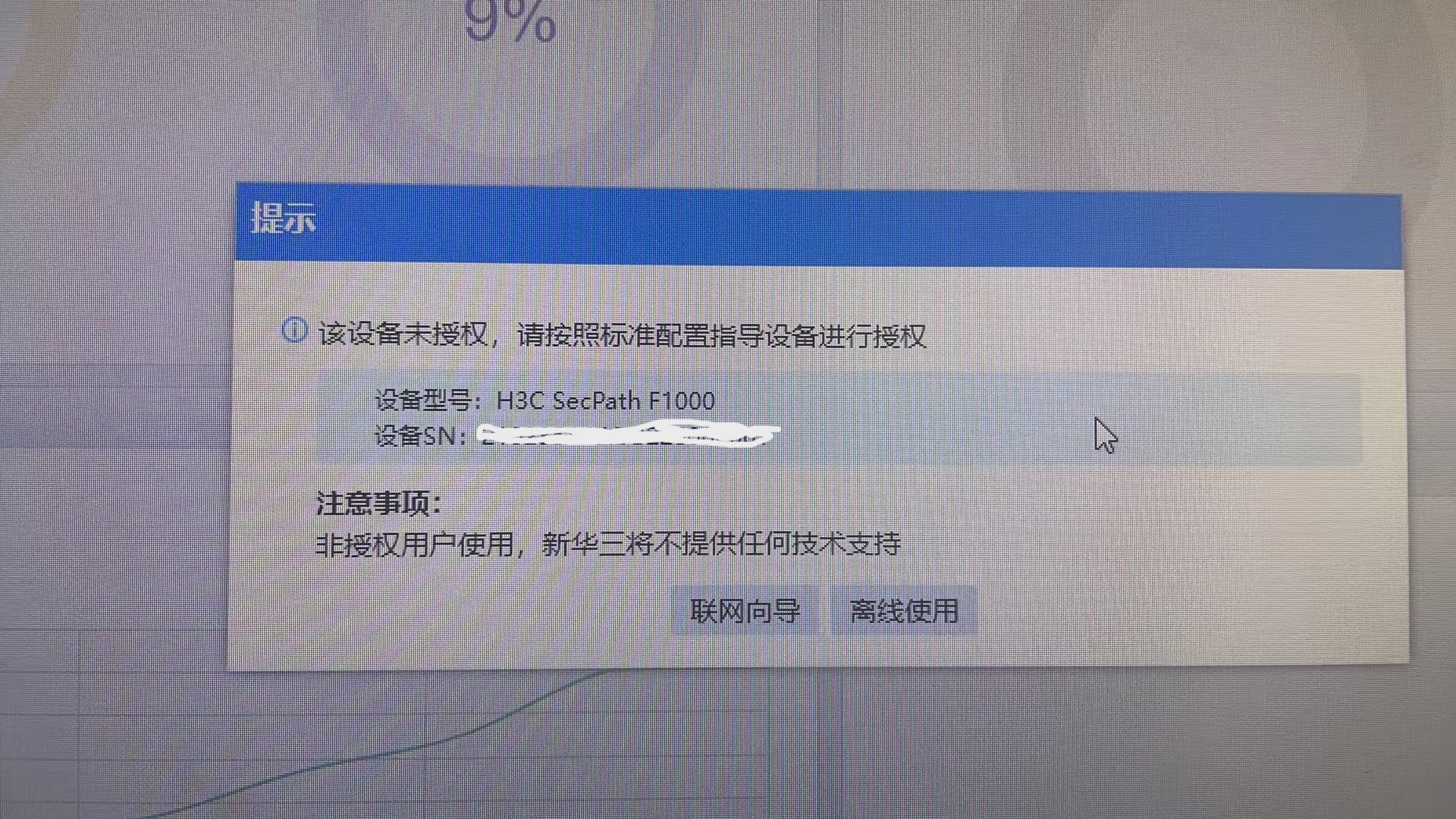 防火墙打完授权之后,授权管理里状态是in use,打开首页监控还是提示该设备未授权