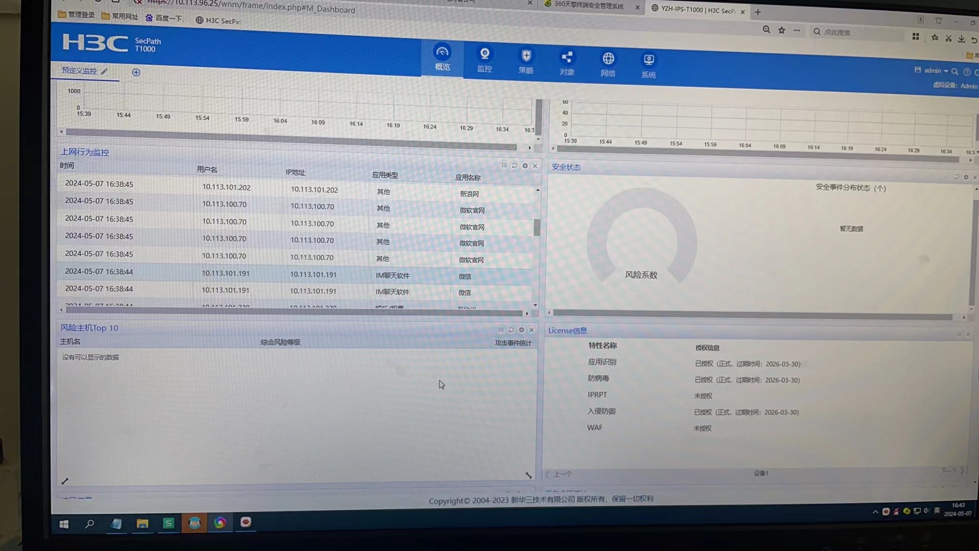 图上的风险系数和风险主机都是空白的,怎么样才会有数据
