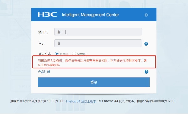 目前imc平台授权由于物理环境导致失效了。现在不论是从主机登录还是备机登录。登录界面都是当前系统显示备机。这个怎么操作恢复切换到主机呢。是不是从新例外申请授权手注册为主机就行了。