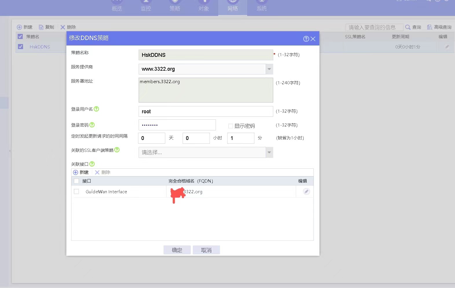 通过WEB界面,配置了DDNS的策略后,但是却没有生效,地址一致没更新,现在不知道还需要哪些设置,或设置错误,( ddns的信息已经验证正确),就是无法生效