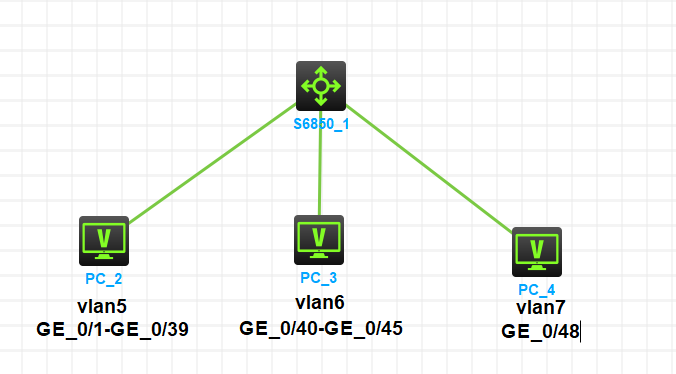 如图,如何让交换机下联3个vlan,vlan5和vlan6之间不互通,vlan7的PC同时可以访问vlan5和vlan6