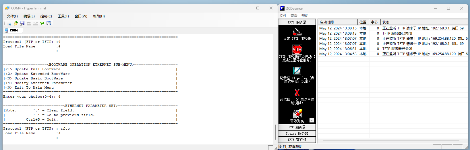 ​TFTP 服务器按楼上面的设好的文件名也改了,在终端输入TFTP是LOAd file mame 显示4