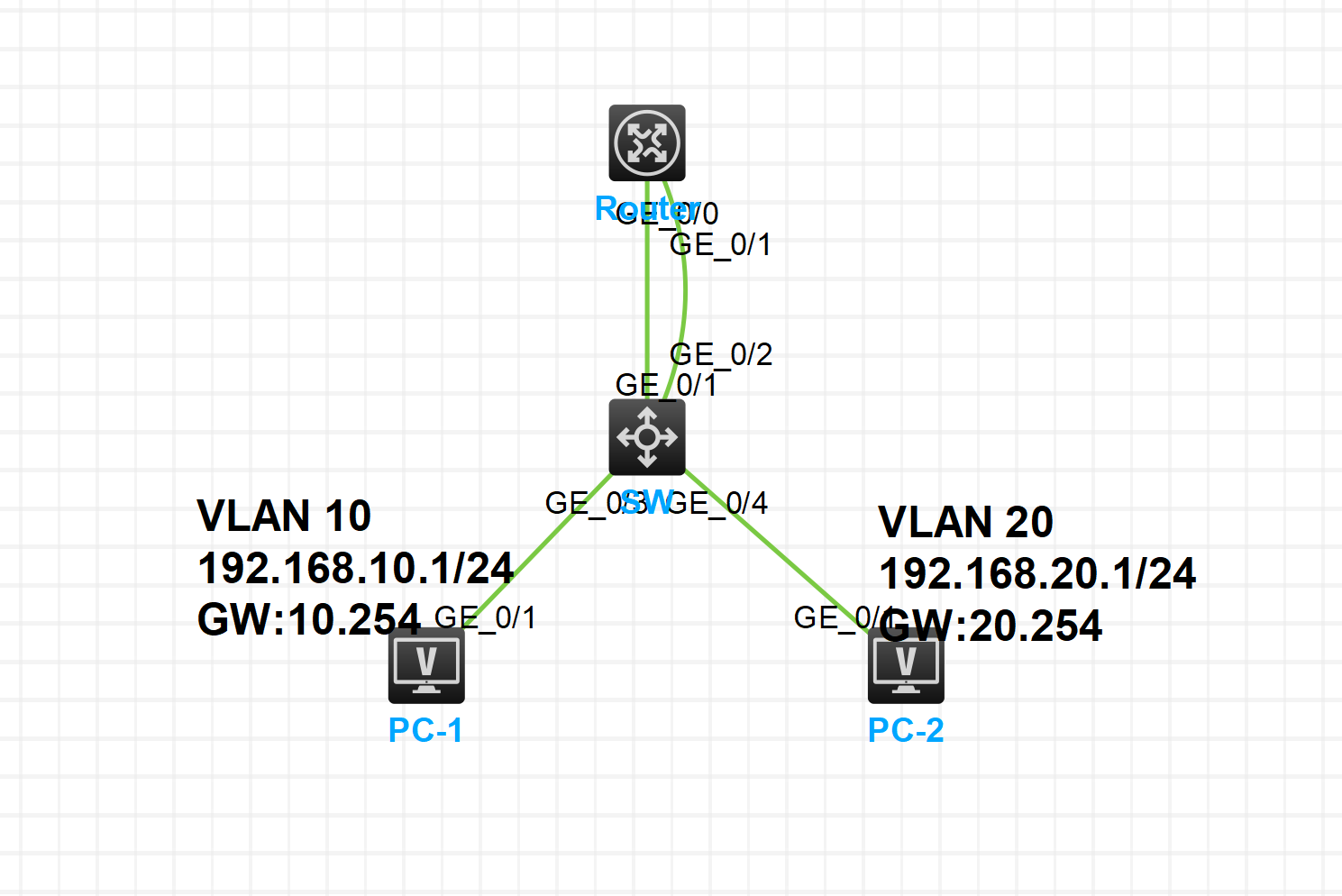 我直接加载了HCL里面的案例:通过路由器实现VLAN间路由