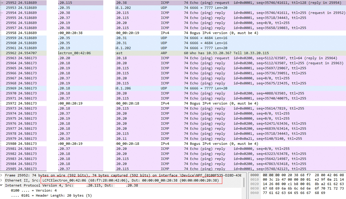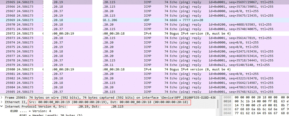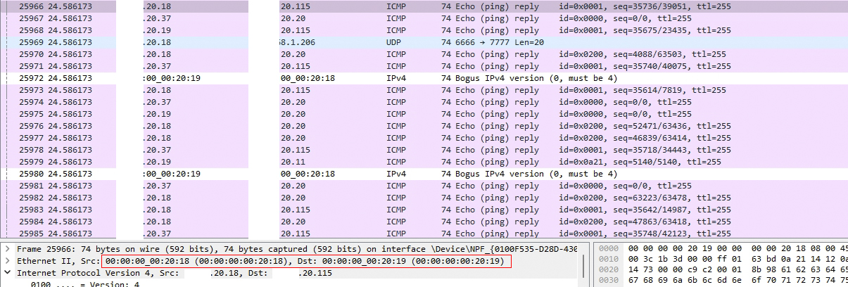 这两张是回包的mac 地址,这两个回包目的ip地址对,但是目的mac 是不对,像这样的mac地址不正常的回包还有好多,请问大神,这种属于ARP 病毒的症状吗?
