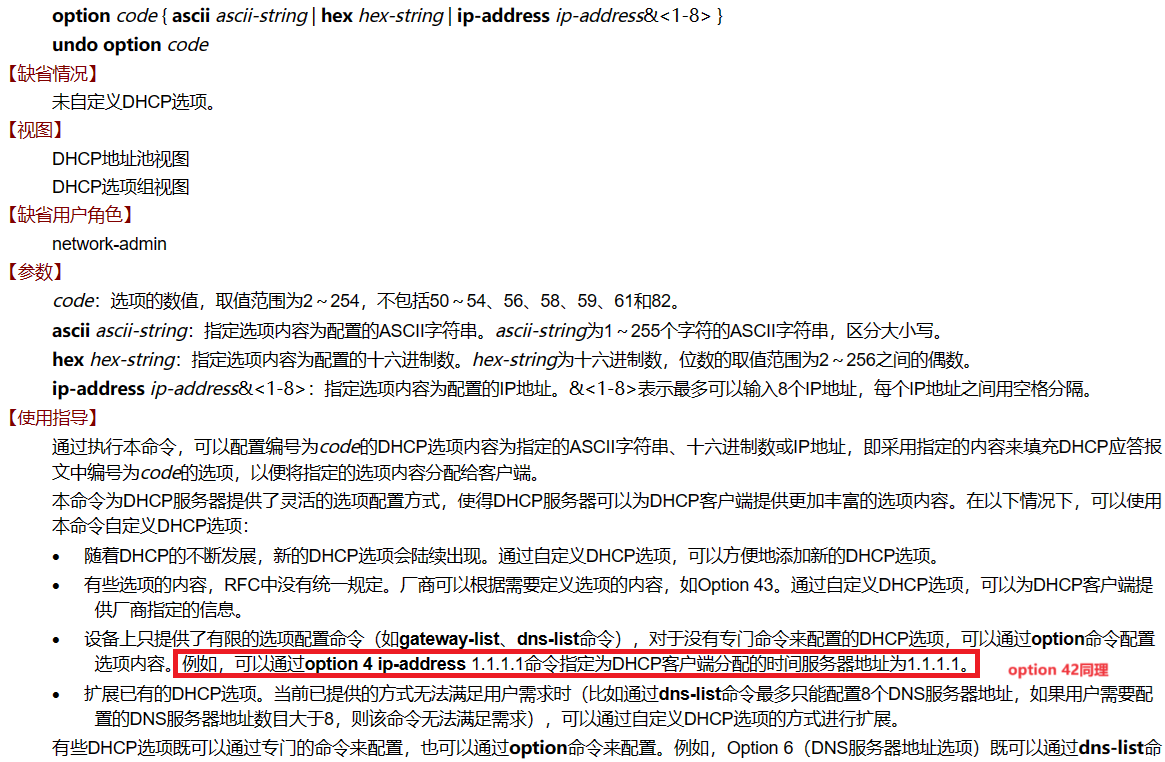 h3c的 msr路由器支持dhcp的option42设定吗?在那里设置?