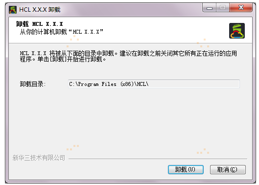 必须在管理员用户下卸载HCL。