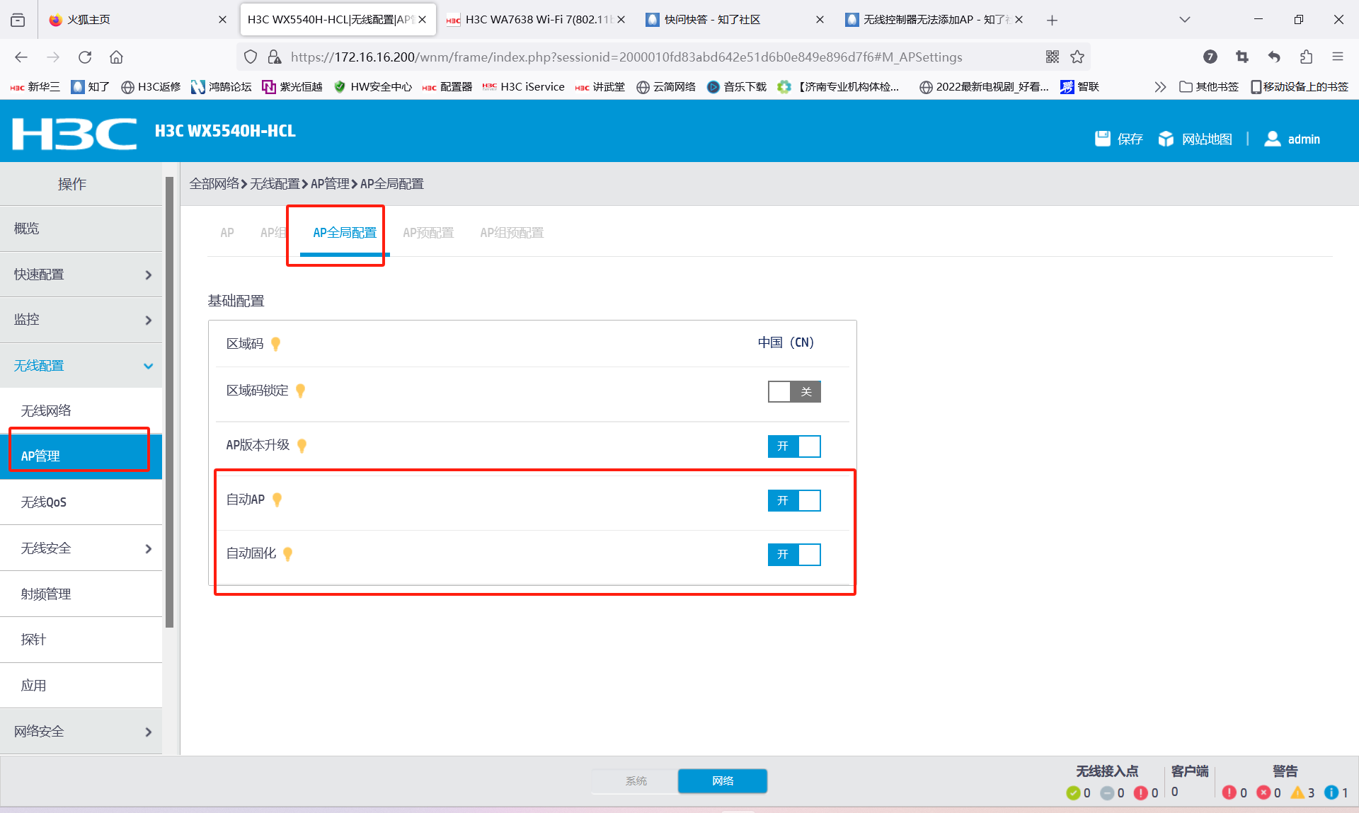 在控制器里面开启自动AP和固化