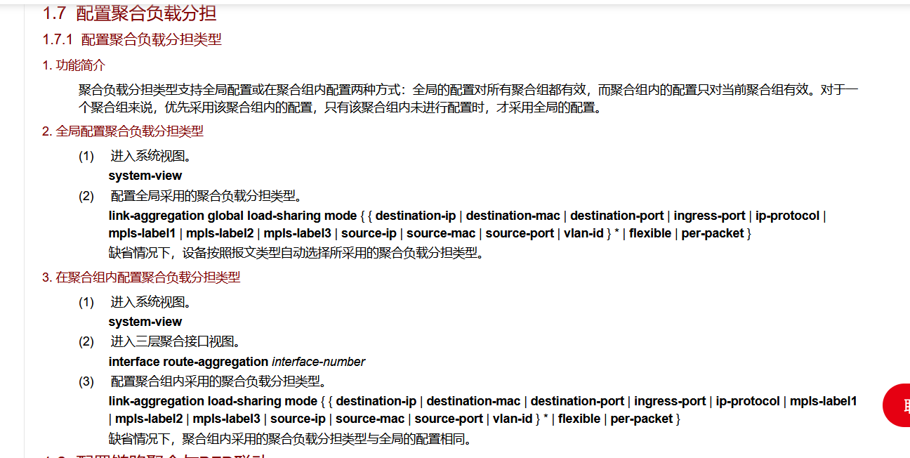 2台S6850-56HF设备做堆叠,终端电脑双上行到堆叠的不同设备上,请问有命令设置支持聚合口中每个物理接口的负载均衡吗?