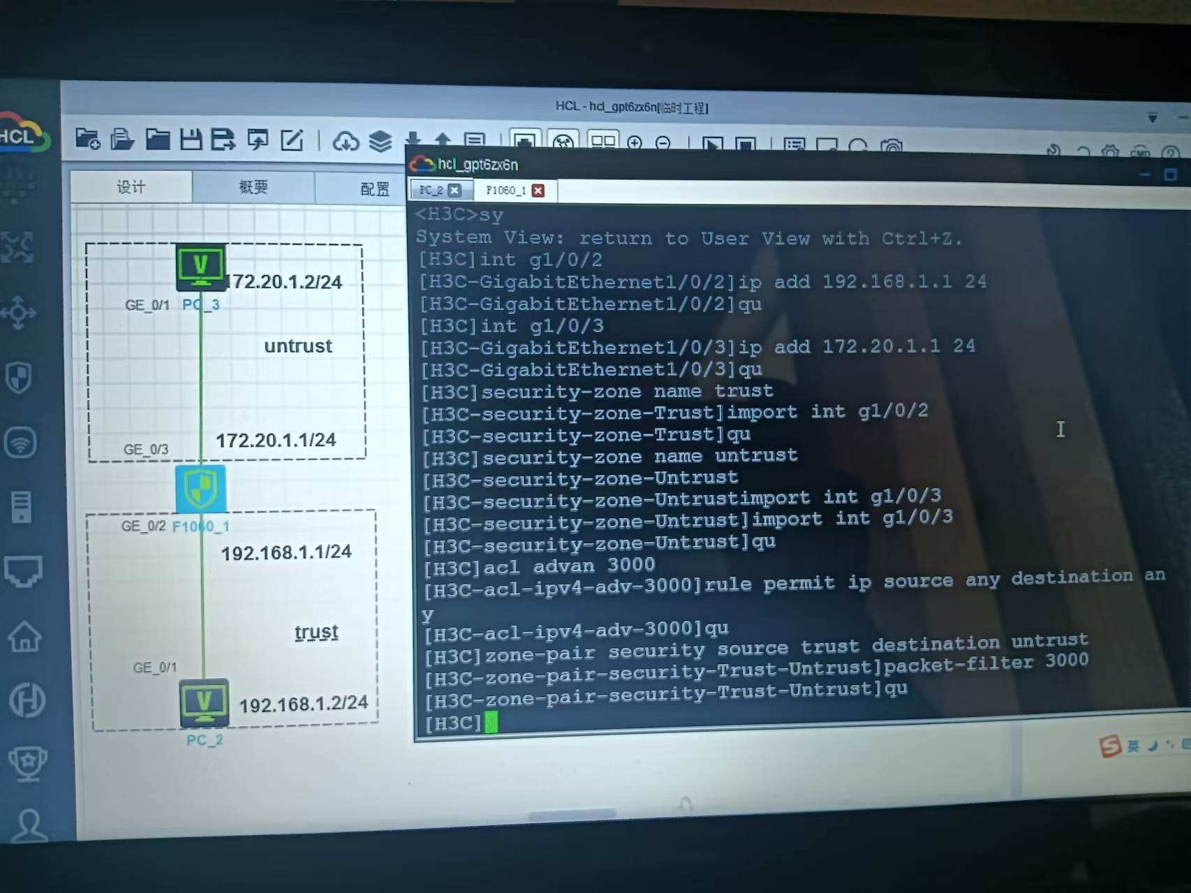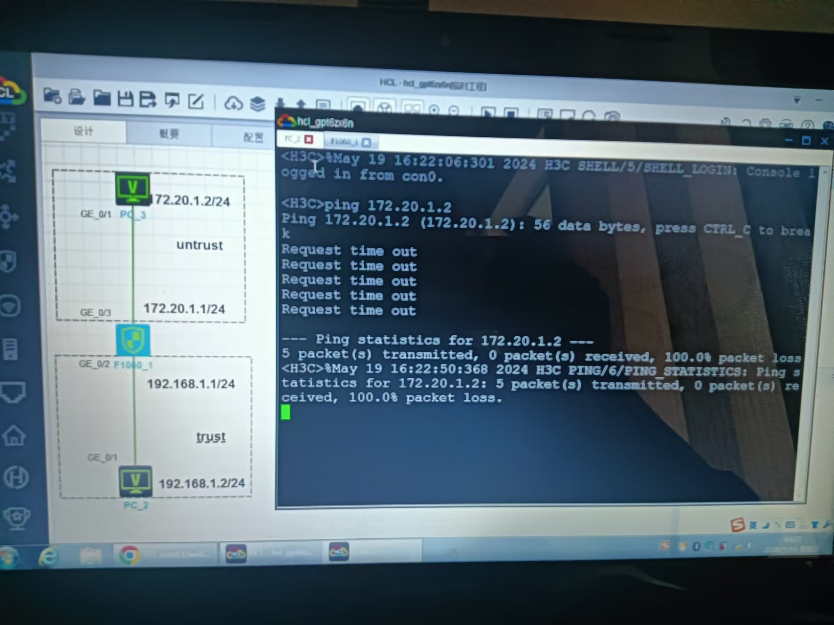你好,是从PC2上pingPC3的(trust区域ping 往untrust区域)