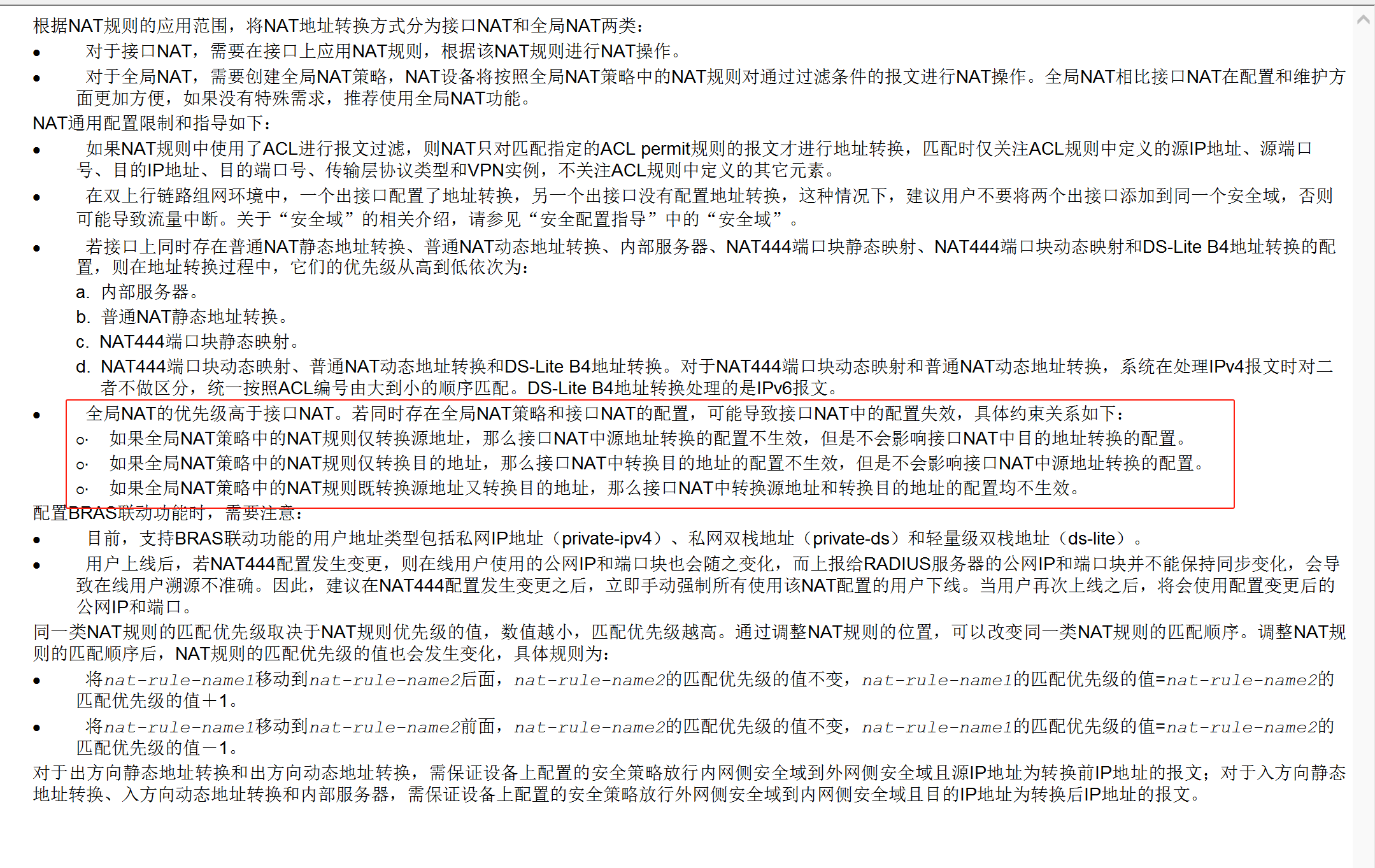 防火墙都配了nat outbound 和nat global-policy,会优先生效哪一个,这两个有啥区别