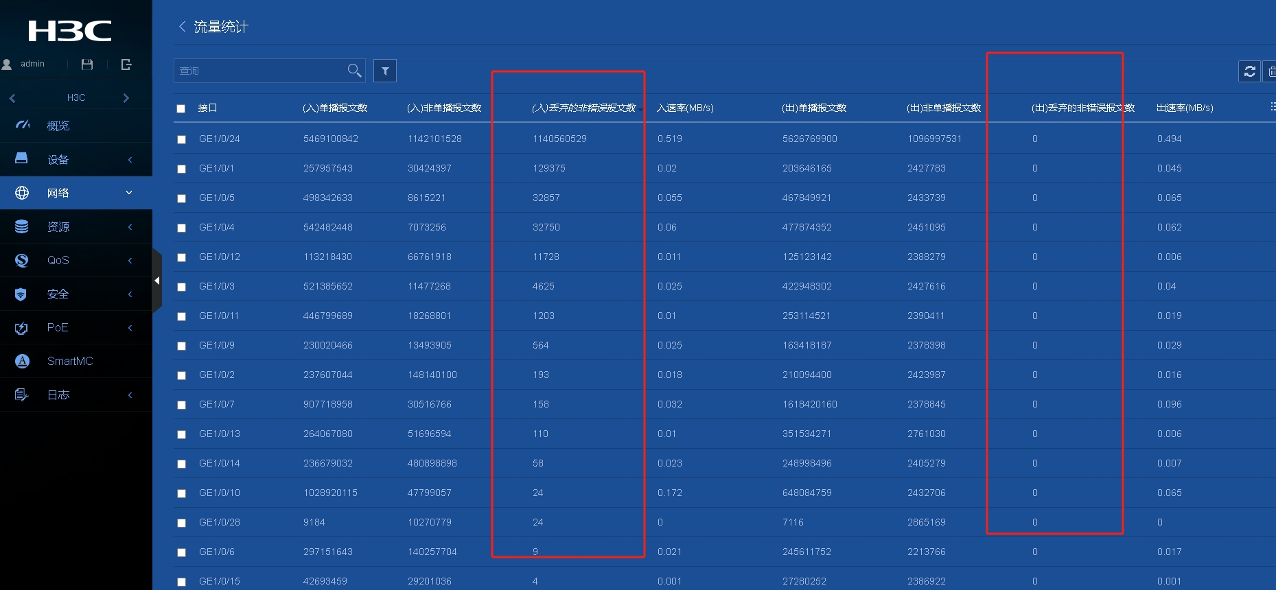 H3C 华三S5120v3s 交换机 (入)丢弃的非错误报文数 好多端口都出现,但是(出)丢弃的非错误报文数都为0,请问怎么解决。