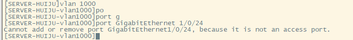 输入interface GigabitEthernet 1/0/24,然后port access vlan 1000,返回This is not an access port.