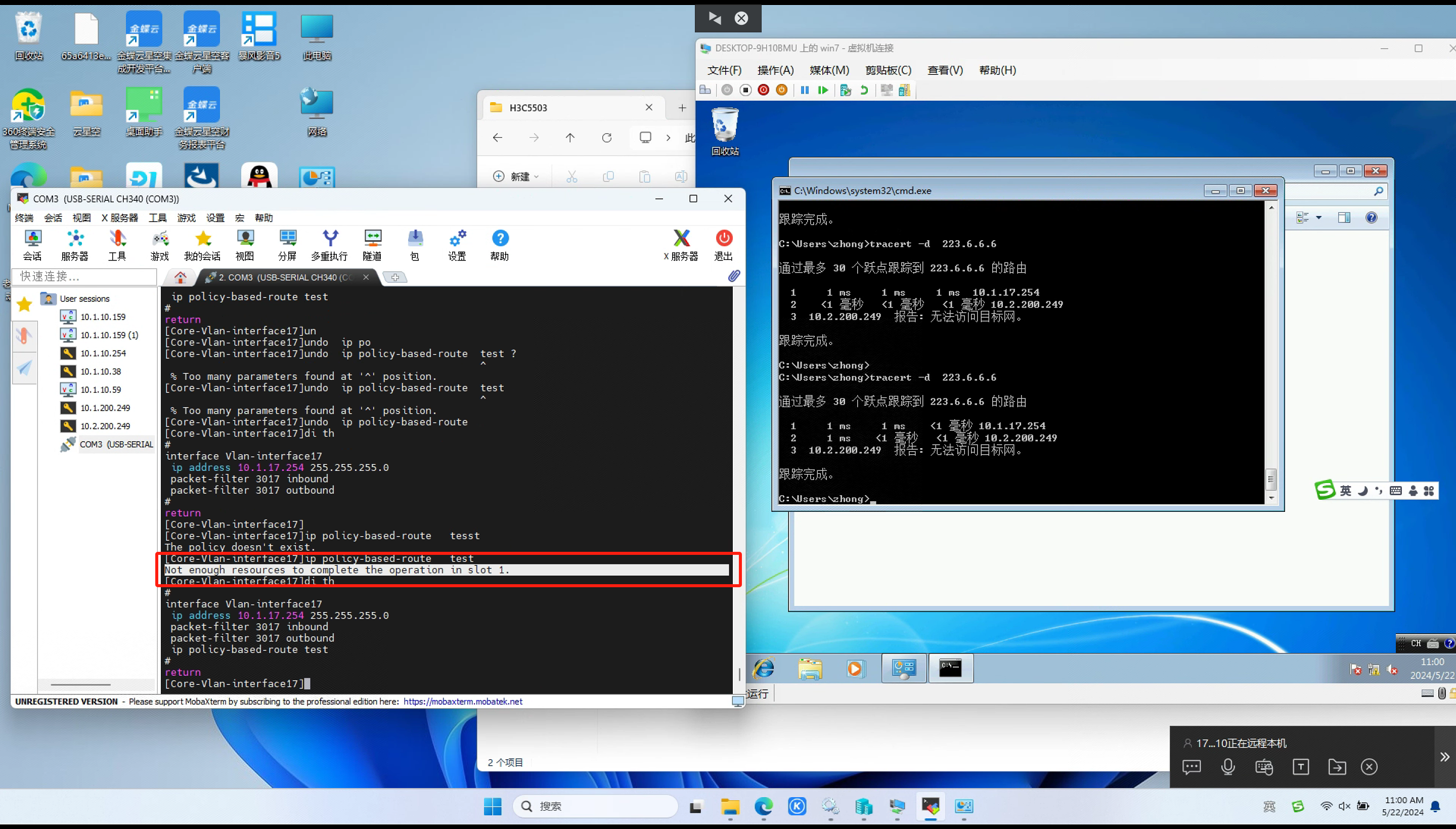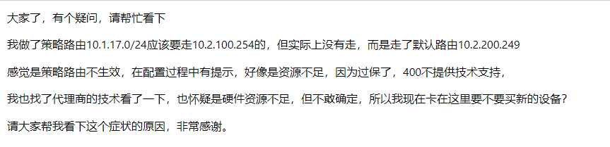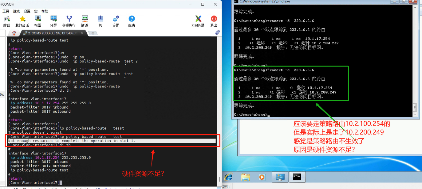 那应该是资源不足,导致你的ACL没有生效了。所以没有走策略路由。