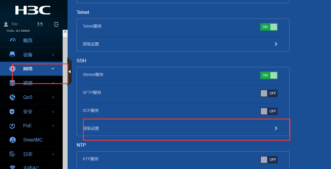 已经开启了web界面,怎么设置http和SSH和的IP现在登录