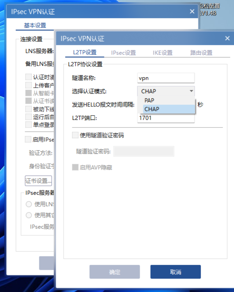 用inode对一台配置好L2TP的磊科路由器,进行拨号,显示是成功的