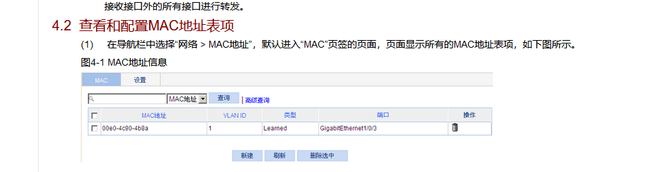 (2) 单击<新建>按钮,进入新建MAC地址表项的配置页面,如下图所示。
