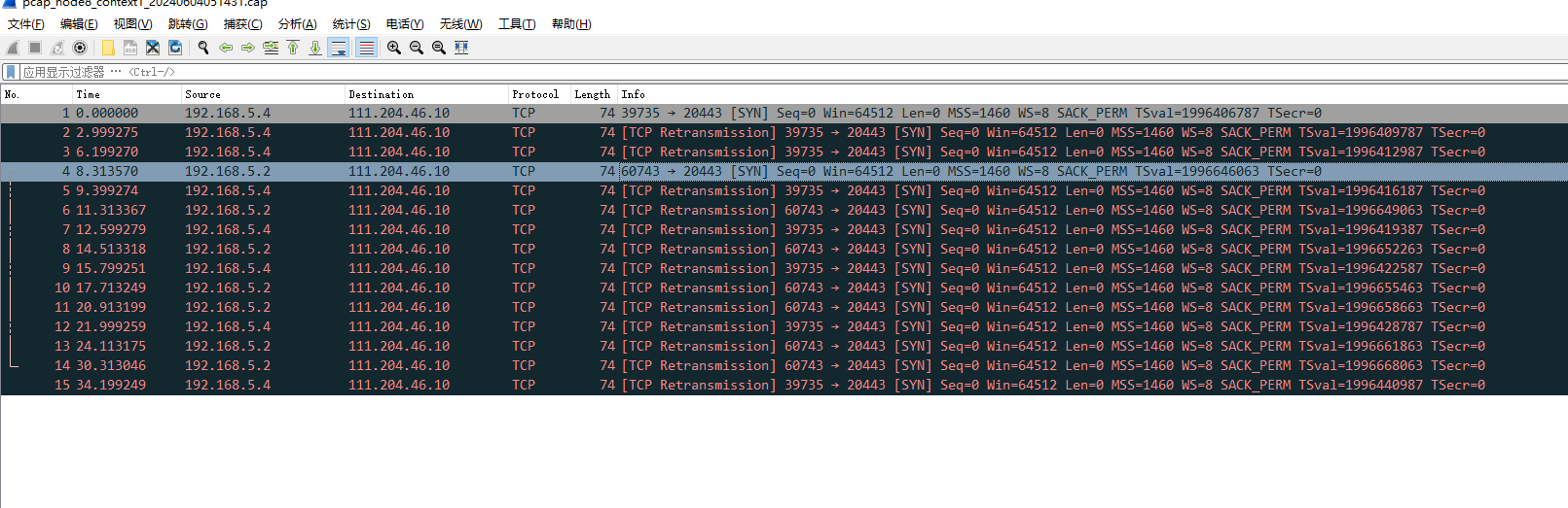 双外网 一条外网映射服务器20443端口 外网可以访问 内网无法访问 抓包显示防火墙没有回包 nat hairpin enable有配置