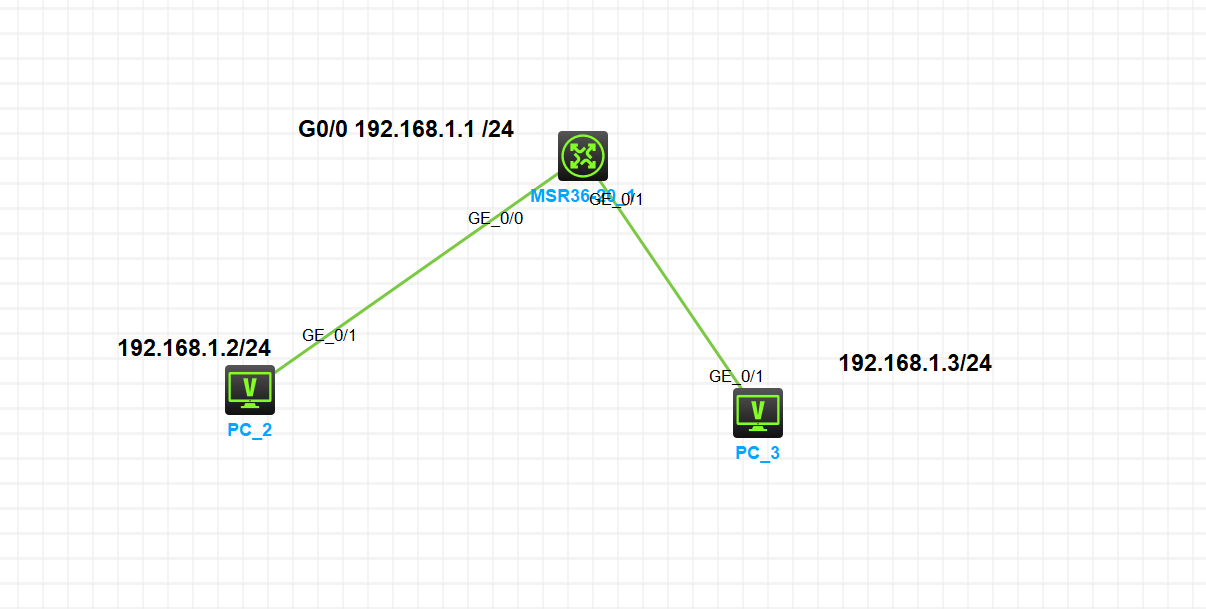 为啥这个换行换不了。。。你可以在路由器做配置: interface vsi-interface 1 #ip address 192.168.1.1 24 #vsi xx #gateway-interface vsi-interface 1 #interface range g0/0 g0/1 #xconnect vsi xx 这样g0/0和g0/1接口下的pc就是一个网段的了