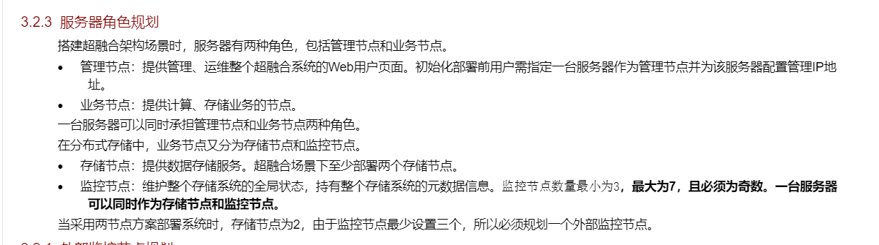我在知了看过一遍文档,说的超融合系统部署在虚拟机web界面会打不开,是不是部署成外部监控节点,就只要他能ping通就行,实际上外部监控节点,就是个仲裁设备的意思吗
