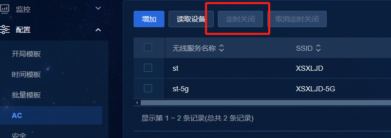 你可以把AC添加到云简网络,云简上可以配置无线服务模板定时开启关闭的功能