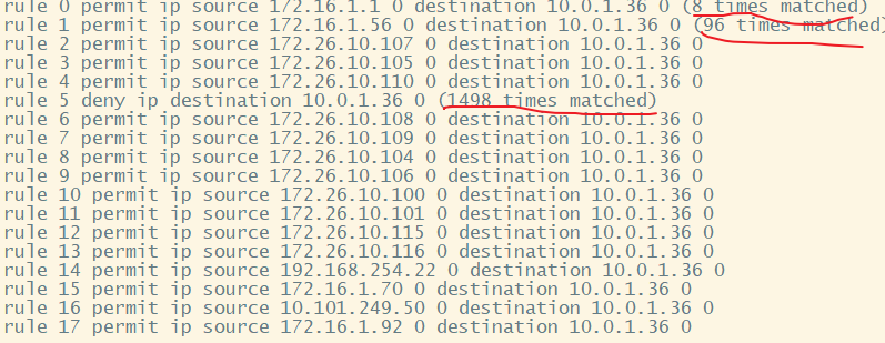 把第5条挪到最后面,这样如果有匹配的会优先匹配的,deny ip 他是拒绝任何源访问10.的,这种都建议放在最后,也方便后期添加其他允许的源ip