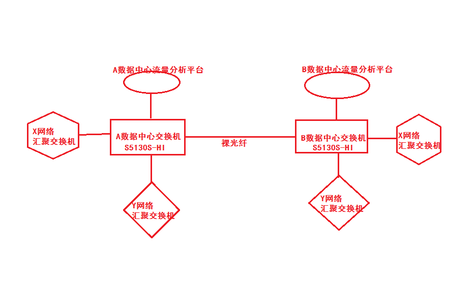 目的是实现A、B两个数据中心的X网络流量镜像到A数据中心的流量分析平台上,A、B两个数据中心的Y网络流量镜像到B数据中心的流量分析平台上,两个数据中心由一根裸光互联。
