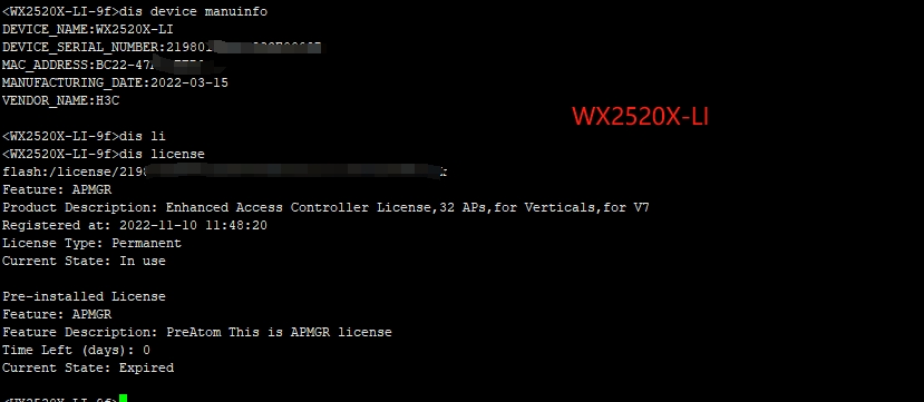 你不要去迁移了,设备不支持的。WX6108E上面的是运营商版本的授权,WX2520X-LI是普通的企业网版本的授权 ,不通用的。