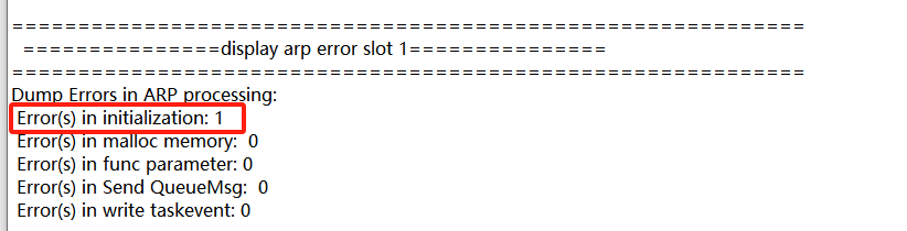 ARP表现的初始化也显示有错误。