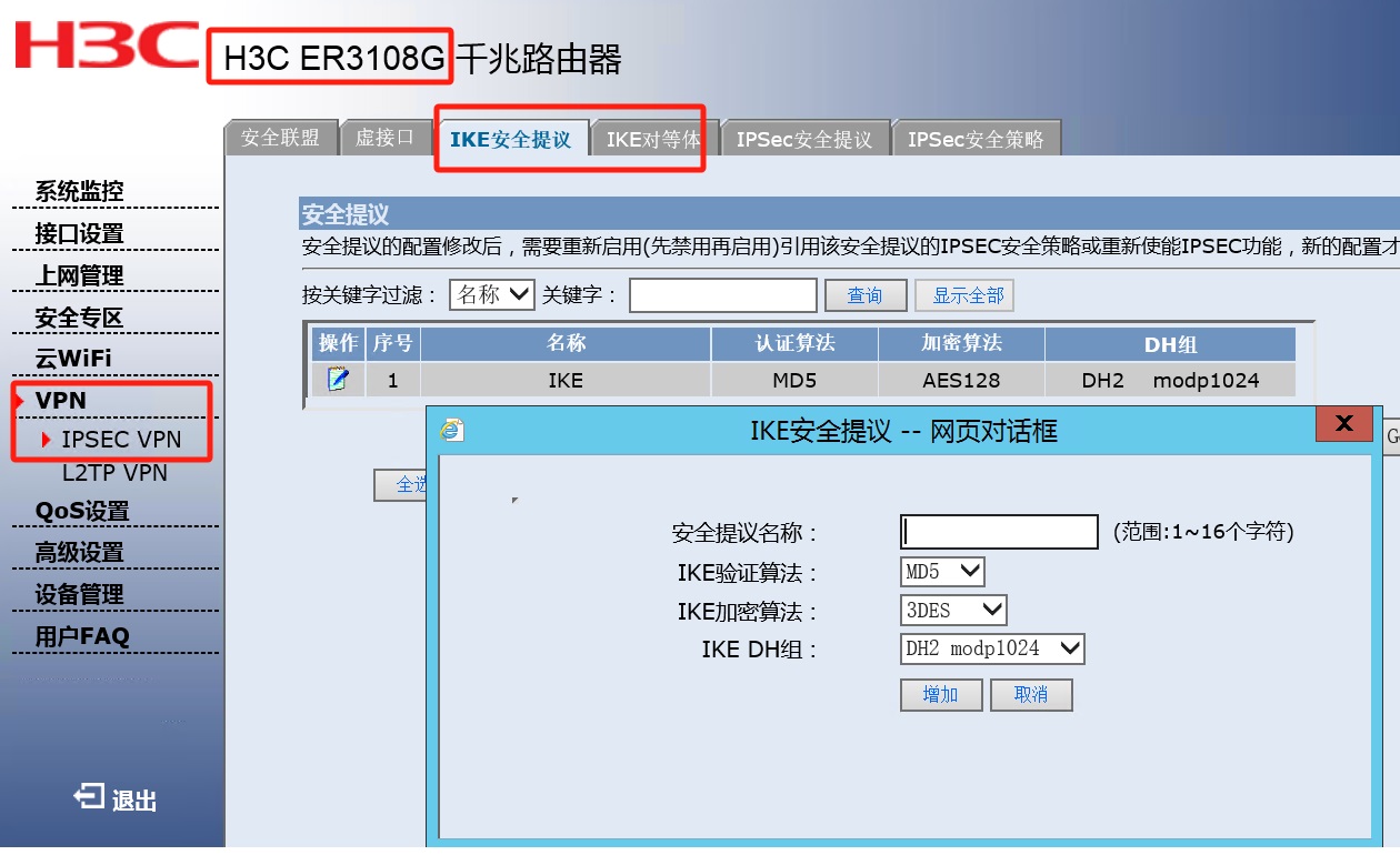 H3C ER3108G 的IPSec VPN是否支持 IKEv2协议?