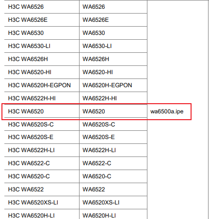 例如我的控制器是WX2500X-CMW710-R5630的。那么对应的WA6520AP的文件名就是wa6500a.ipe