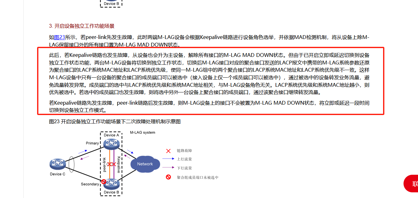 第一岂不是MADdown保持就被开启了,但是白皮书里只是单纯开启了独立工作模式,第二确实我有考虑,就是联动。但是M-lag白皮书里没有提到联动,就是直接描述流量只会走设备A。