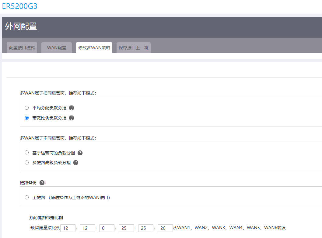 公司接入了3条电信千兆和2条联通500M的宽带,在路由器配置了带宽比例负载分担,之后PC测速只能到500M,是哪里配置的不对吗