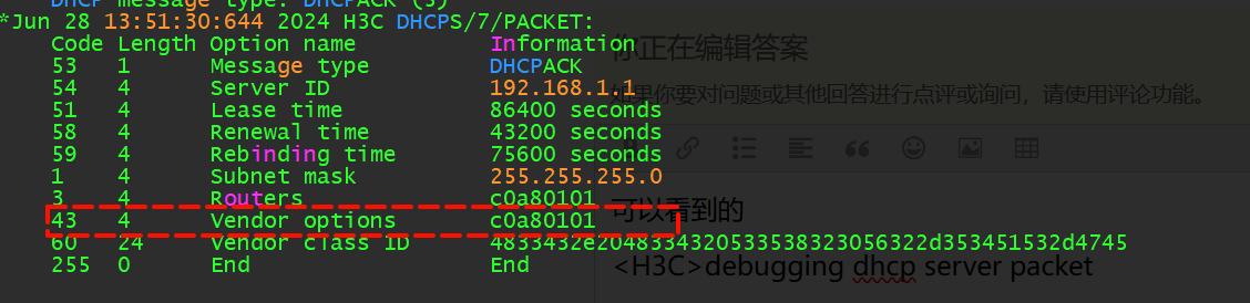 debugging 可以看option 43的下发信息吗?应该怎么操作